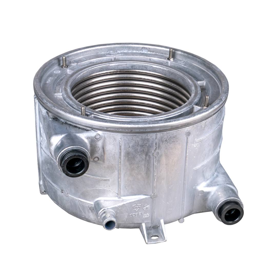 Передает тепловую энергию сжигаемой в камере сгорания газовоздушной смеси теплоносителю посредством теплопроводности. Альтернативное название - монотермический теплообменник.